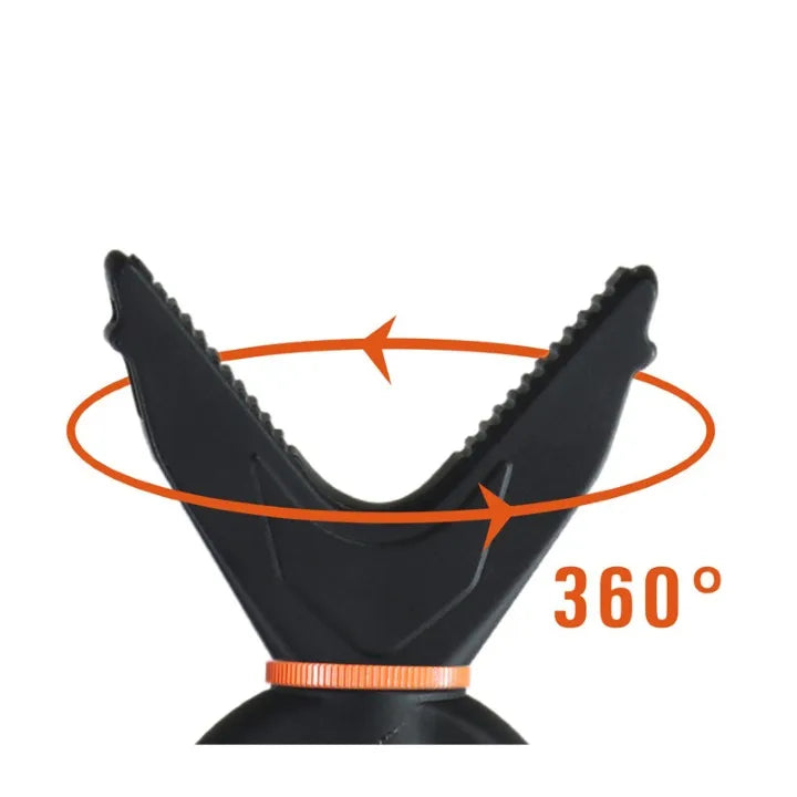 Made of lightweight and durable aluminum alloy, Scout B62 is a bipod designed for on-the-go hunters. It is made of lightweight and durable aluminum alloy. Its V-shaped yoke is rubber-lined for greater stability for your gun and it swivels 360for shots from any angle. Quick flip leg locks make height adjustment quick and easy.