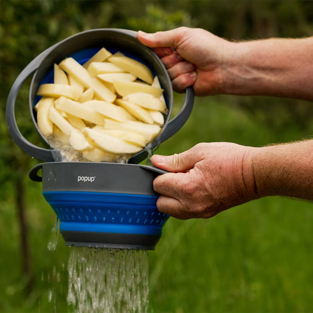 Food prep is a breeze at the campsite, with the lightweight space-saving and collapsible Colander & 2 Bowl Set from Popup. This set comes with a colander to rinse your veggies, plus a small and large bowl for storing chopped ingredients while cooking outdoors. Each component is made from food-grade silicone, with easy-grab side handles.
