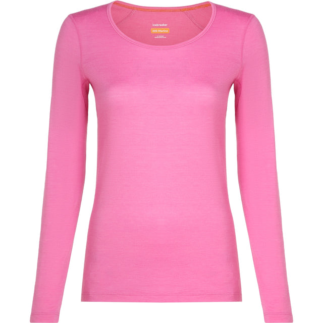 ICEBREAKER WOMEN'S MERINO 200 OASIS SCOOP LONG SLEEVE THERMAL TOP POP