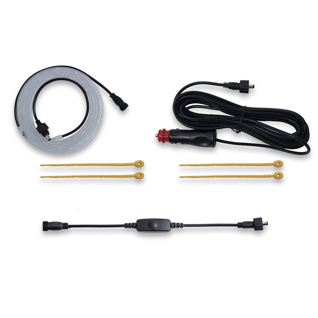 - Kit Includes: 1 x 2m Light Strip with 30 White and 30 Amber LEDs, 1 x 5m 12V DC Cigarette Plug, 1 x Dimmer Switch, 4 x Re-usable Flexi Ties.