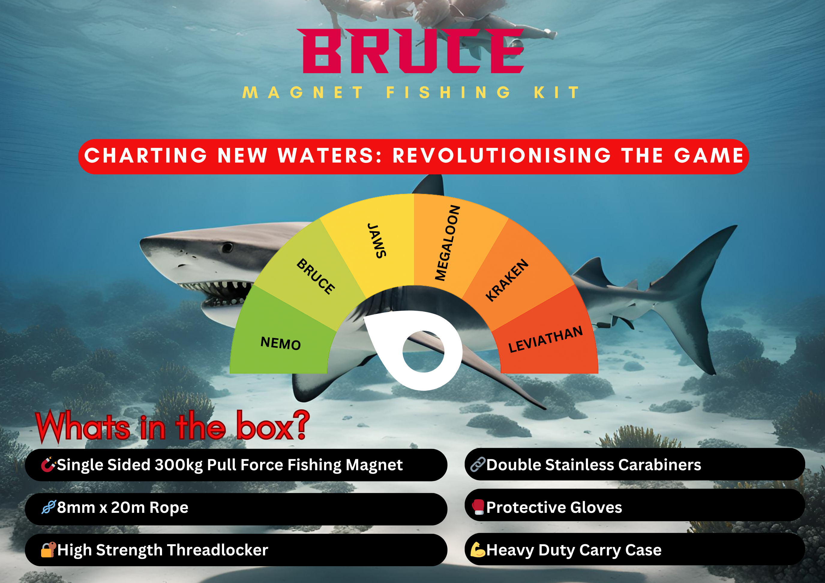Get ready to dive into the thrilling adventure of magnet fishing! With BRUCE, Australia's ultimate beginner magnet fishing kit, you'll unlock the secrets of the underwater world and uncover lost treasures waiting just beneath the surface.