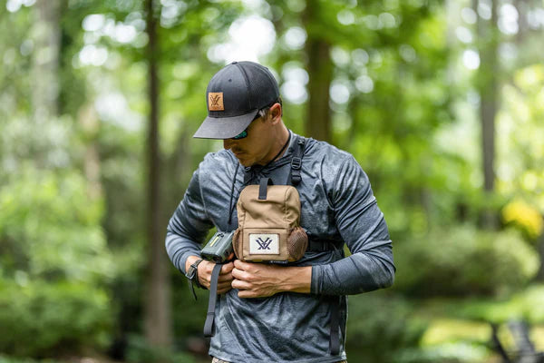 Binoculars are a hunter’s most important asset for finding and identifying game. The GlassPak™ Sport Binocular Harness ensures fast access to your binocular while also protecting against the elements and potential hazards they’re vulnerable to in the field. Constructed with tough, all-weather material for durability. The body-facing, elastic closure keeps out snow, rain, dirt, and debris. A semi-rigid structure, quiet inside liner, and adjustable, comfortable straps combine to keep your binos snug and secure when you’re on the move. Mesh side pockets keep calls, wind-checkers, and other essential items close at hand. The rear pocket holds larger items such as extra ammunition or a mobile phone. Choose from two size options to accommodate any binocular.