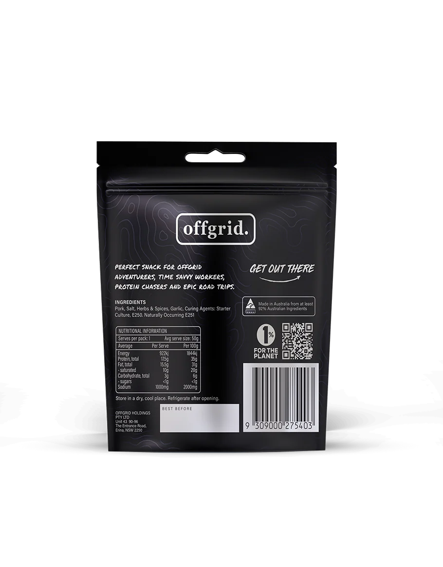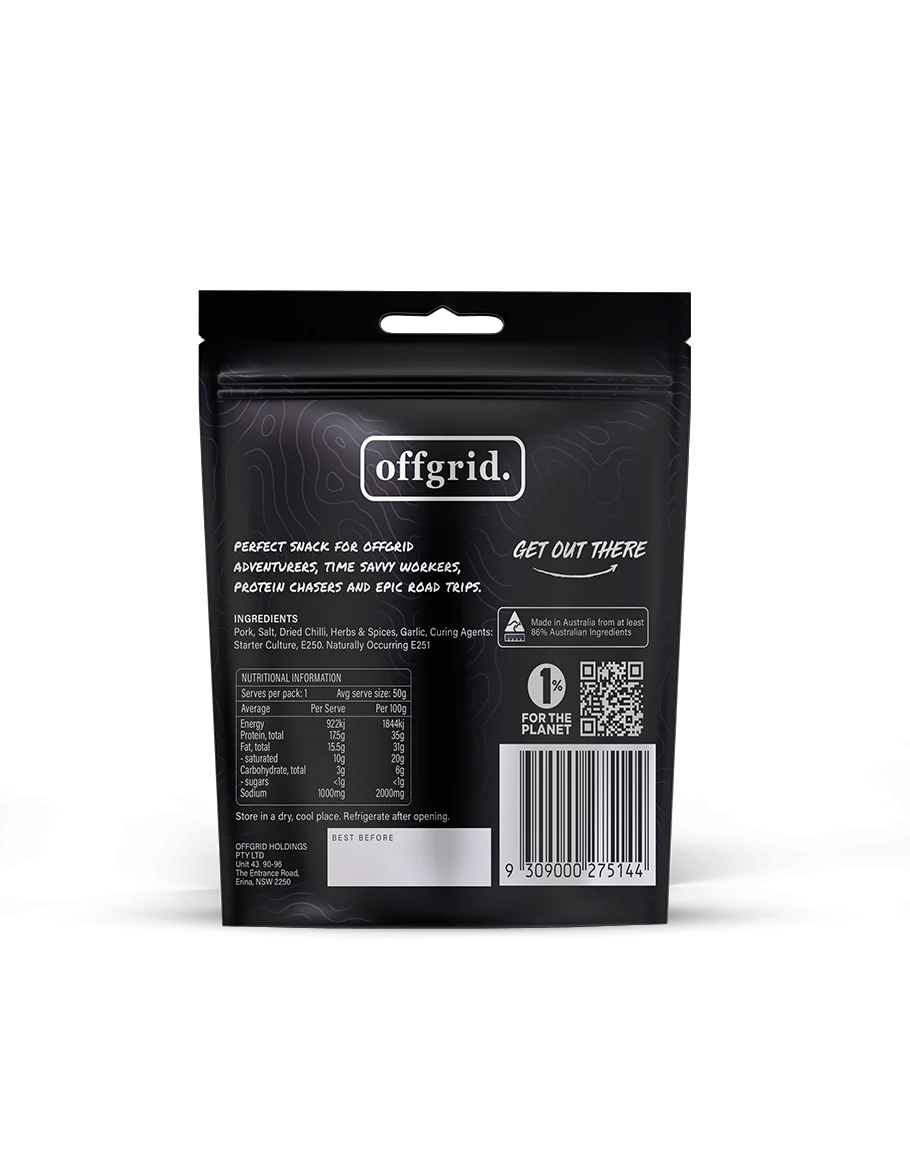 OFFGRID WOOD SMOKED SALAMI SNACK - CHILLI BLEND is backordered and will ship as soon as it is back in stock.